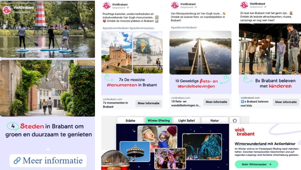 Er is zoveel moois te ontdekken in Brabant, en dat bundelen we in tiplijstjes en reisideeën op visitbrabant.com. Ze worden regelmatig aangevuld én jaarrond gepromoot via online advertenties.